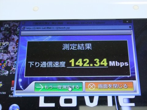 142Mbps出ています。何回か計測してもこれと近いスループットになっていたので、この
