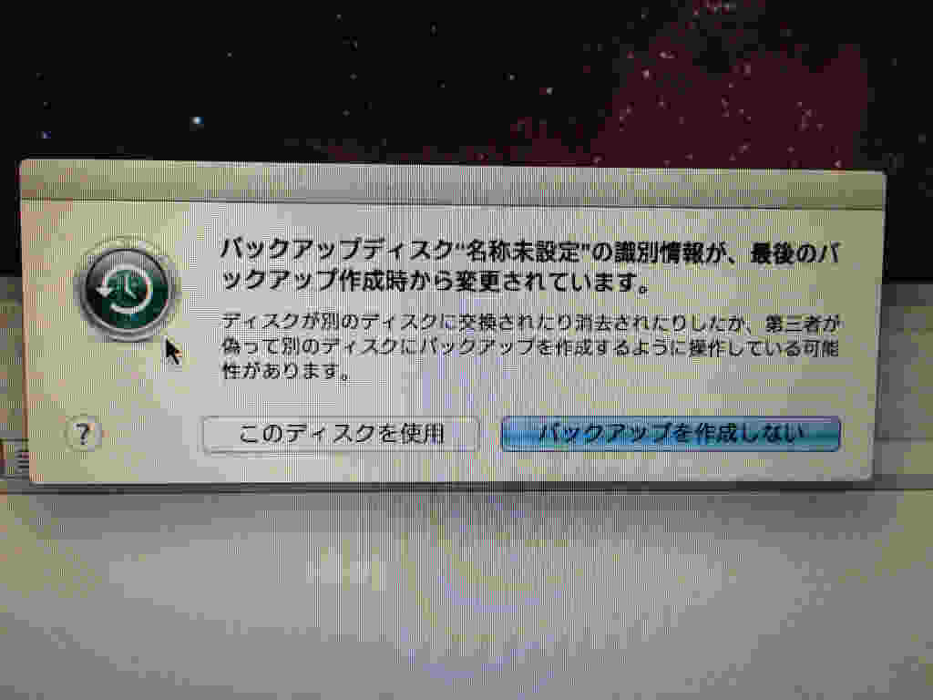 以前にバックアップしたドライブと違うのでこのメッセージが表示されます