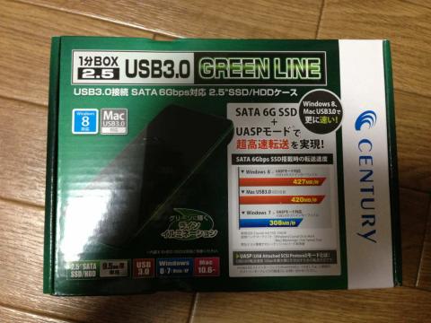 外付にするUSB3.0ケースです。元々の容量は少ないですが