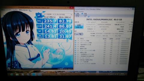 下列は右からintel SSD 80GB、左がMacBookAir2012の内蔵ドライブを