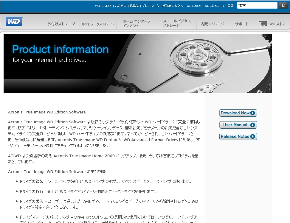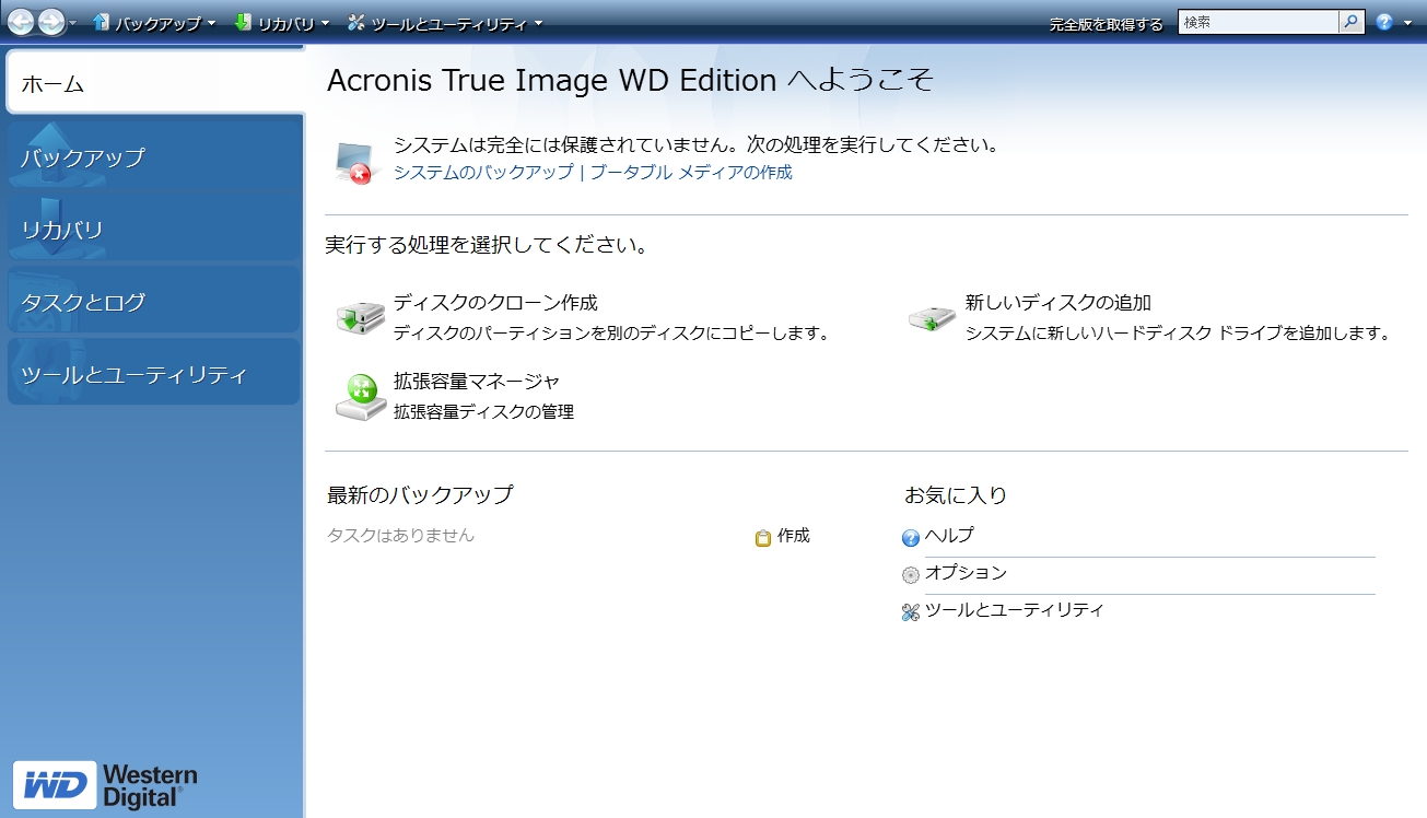 この「WD Acronis True Image」はWDのオフィシャルHDD管理ソフトで