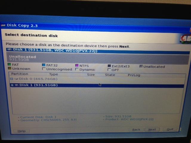 b, ソースHDD(LINUXサーバ SEAGATE 500GB)と移行したい