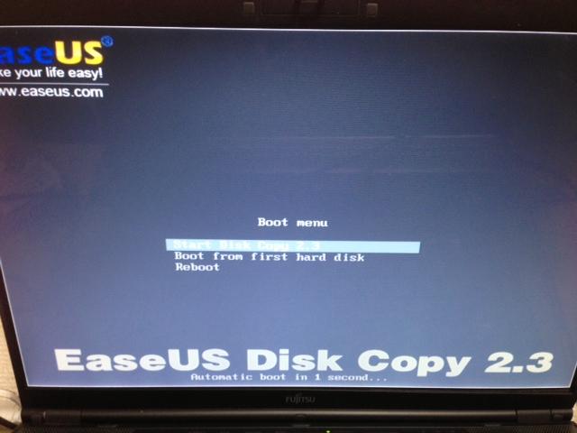 フリーソフトウエアとして私の定番ソフト「EASUS DISK COPY」 を使用します。