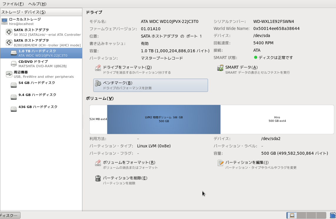 500GBのパーティションが作成されました♪ ここにウェブサーバのBACKUPや各種BACKUPを