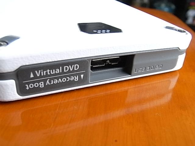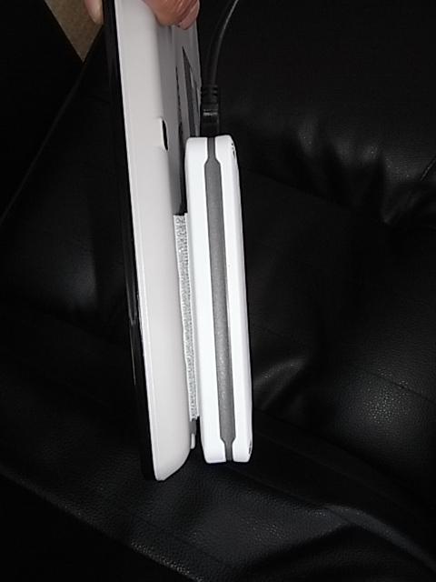 化粧ケースから取り出すと ポータブルHDDの白い本体が姿を現してきました。