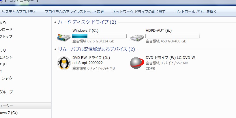 無料OS Linuxの今回は、「KNOPPIX」を「仮想DVD-RW」にいれて使用。
