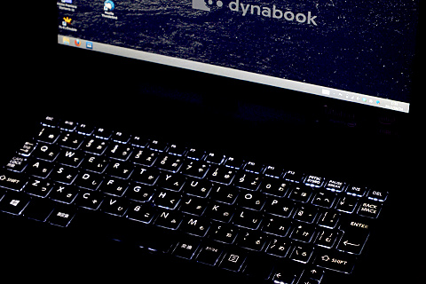 バックライトキーボードと言いまして、ウラからLEDで文字を浮かび上がらせてくれます。暗いところなんかでのキータッチも安心です。何気ないですが、このへんもさすが東芝!ビジネスユースというか出張時の使い道をわかってますね。