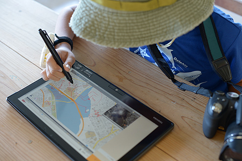 土曜日で学校も休み。天気もいいので生きもの大好き小学生の息子と近所のマングローブ林(湿地センター:環境省)に出かけてみる。5分ほどレクチャーしたのだが、物心ついた時からPCやタブレット、デジカメをいじり倒している小学生は飲み込みも早い。大人と違ってWin8にも全く抵抗はないようだ。