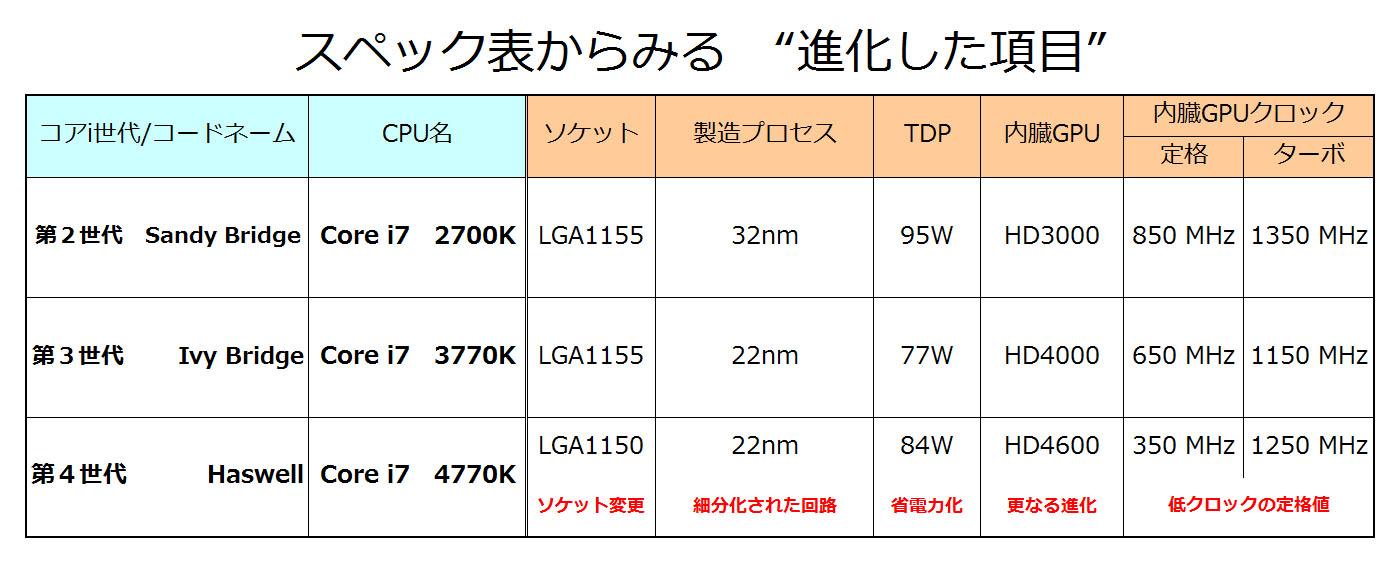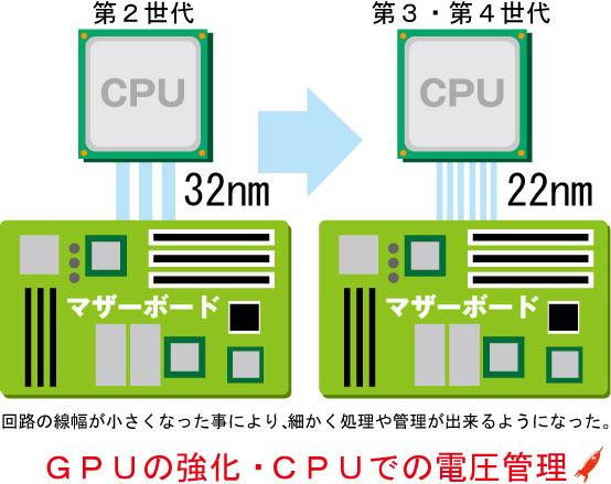 Ivy Bridgeに世代交代したとき、32nm⇒22nmに製造プロセスが変わったのですが、