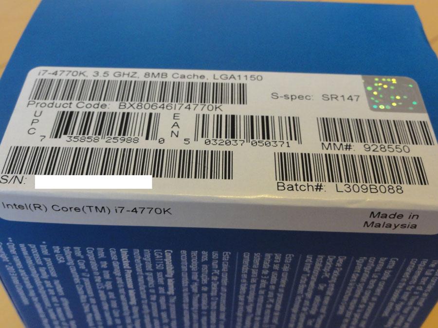 生産はマレーシアでした。ちなみに、i7-2700Kはコスタリカ産でした。