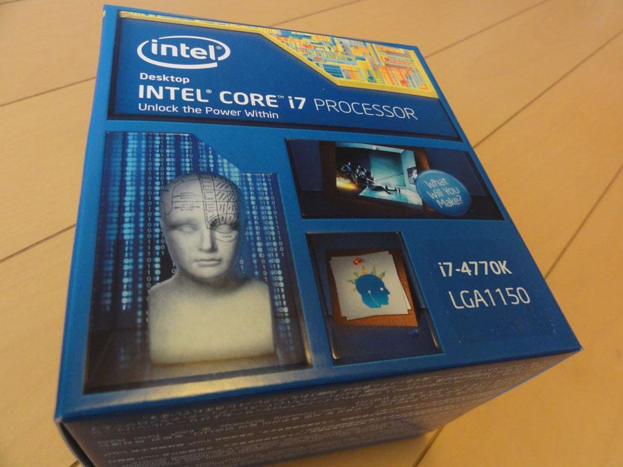 よく見ると、パッケージの黄色いデザイン部分、corei7-4770Kのパッケージの方が細かいような。。