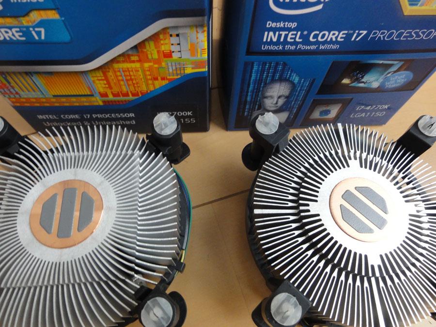 左:i7-2700K付属のCPUクーラー 右:i7-4770K付属のCPUクーラー
