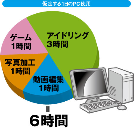 あくまでも、1日のPC使用用途が上記ならば、、の話ですが、