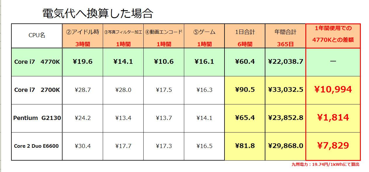 本レビューの中で、CPUごとに電気代のシミュレーションを記載しましたが、
