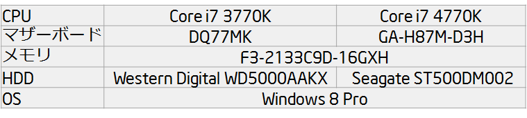 双方定格運用ということで、OC機能なしのマザーボードでやります。HDDを合わせていませんが、HDDアクセスに支配される検証はしないと思われるので、誤差だろうと高をくくっています。