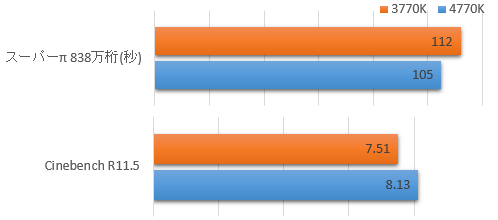 Super-π838万桁とCinebench 11.5は下記のとおりです。