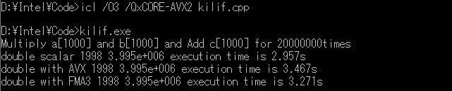 i.AVX2、FMA3対応インテルコンパイラを利用したコード実行速度の検証