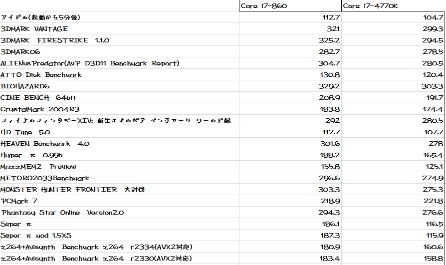 ちなみにi7-860の頃から考えると17WaT程度下がりました。