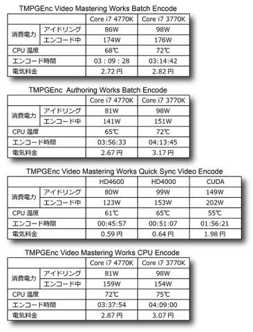 エンコードに関しては、約3%の速度向上,消費電力に関しても3.5%程度向上していました。
