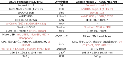 左: Google Nexus 7 / 右: ASUS Fonepad™ ME371MG