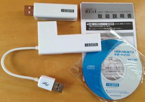 I-O DATA LANアダプター搭載USB 2.0ハブ US2-HB4ETXのレビューをさせて頂きます この機会を頂きました事に感謝いたします