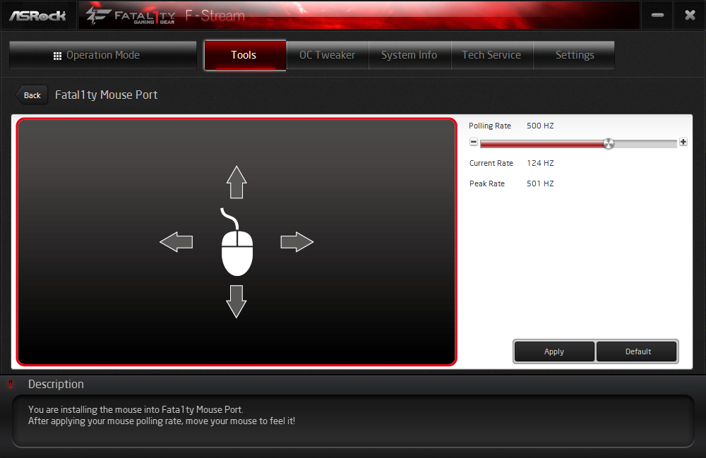 Mouse Port機能が使えるのは、USB2.0ポートのうち、バックパネルにFatarity Mouse Portと書かれたポートだけになります。ここにマウスを接続します。
