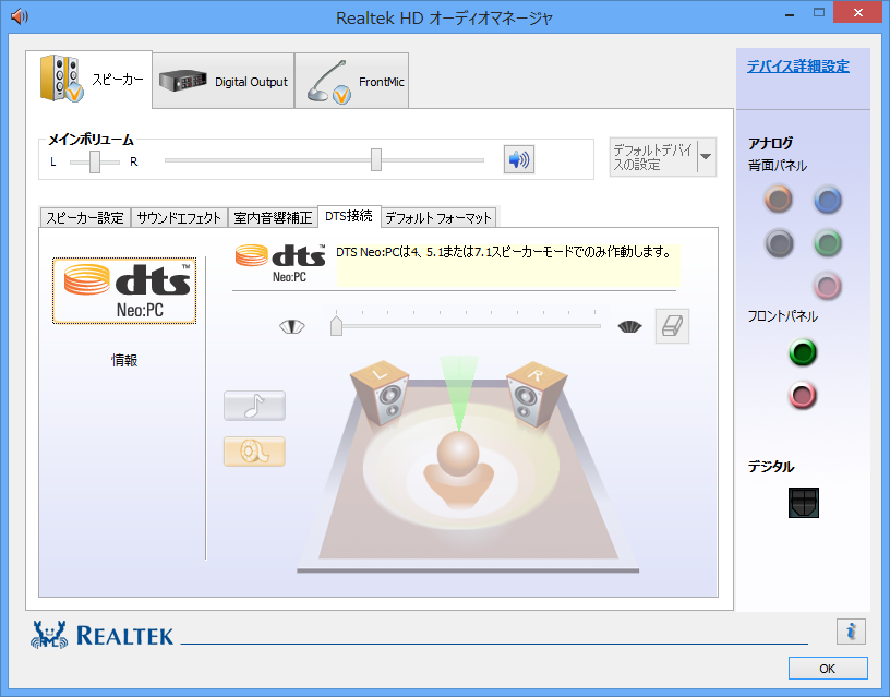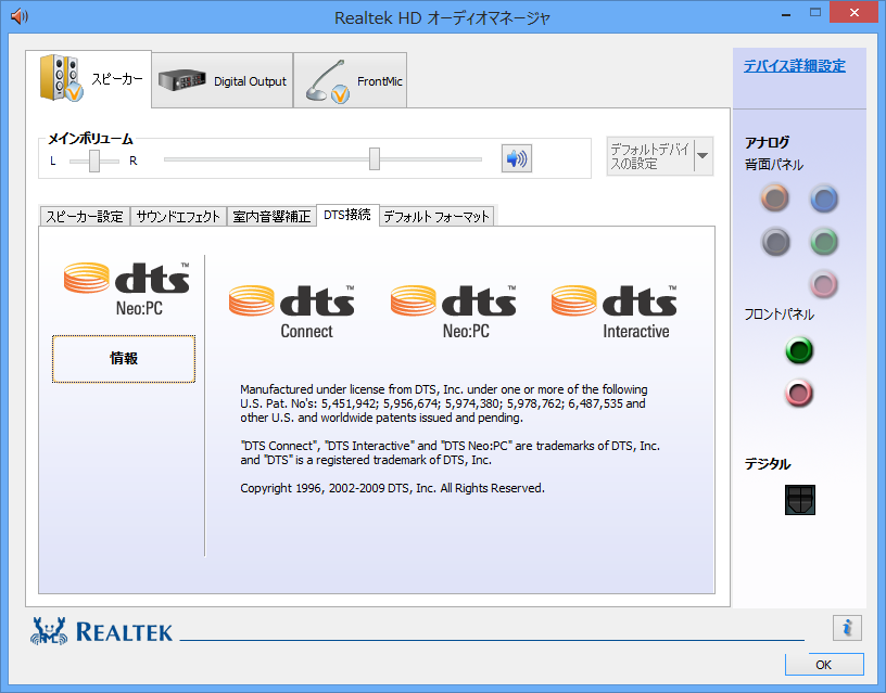 サウンドチップはRealtekのALC1150。しかし、Realtekのサイトに資料がなく、何が違うのかよくわかっていません。