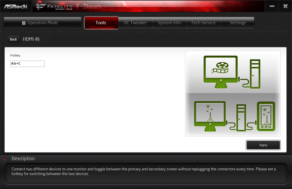あとは切り替えのショートカットキー(デフォルトはAlt+C)を設定して、Applyを押すだけです。