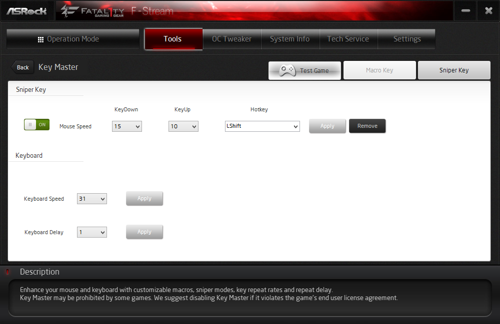 KeyMasterで設定するマウス関連の機能は、Fatal1ty Mouse Portと異なるポートにさされたマウスでも有効になります。