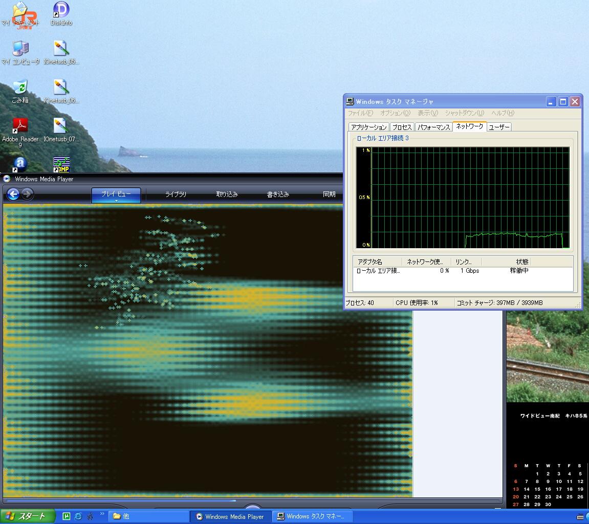 まず、1GBPsで接続されているメインマシンから測定したのですが、あまりの遅さに100MBPsで通信しているのではないか、USBが遅くなっているんではないかと疑いましたが、SS2枚目を見て分かるように、USBはHi Speedモード(仕様上480MBps)ですし、ハブも1000BASE-Tでリンクしているランプが点灯しているので間違いないようです。