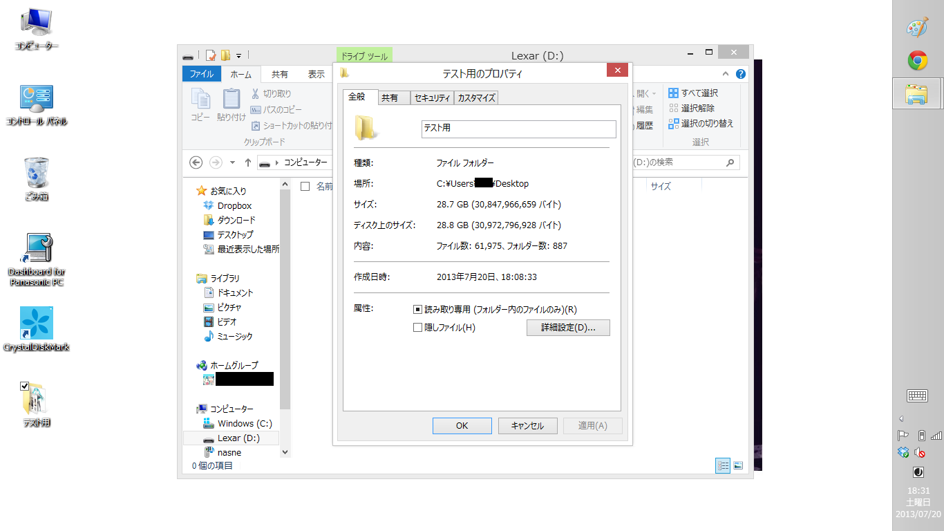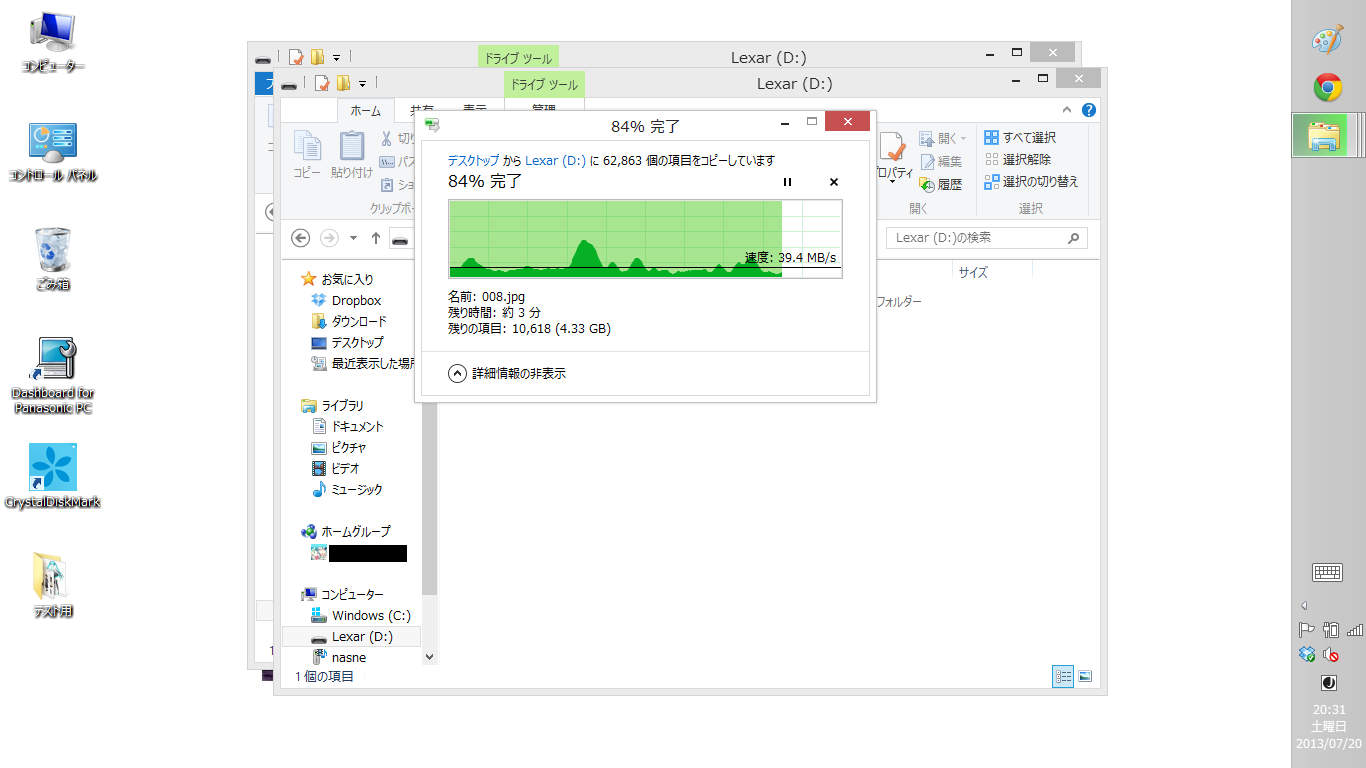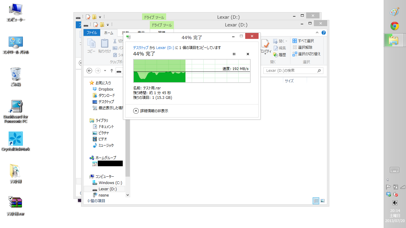 Crystal Disk Markを利用してUSBメモリのベンチマークテストをとったあと、実際にUltrabookを利用して転送させてみたいと思います。