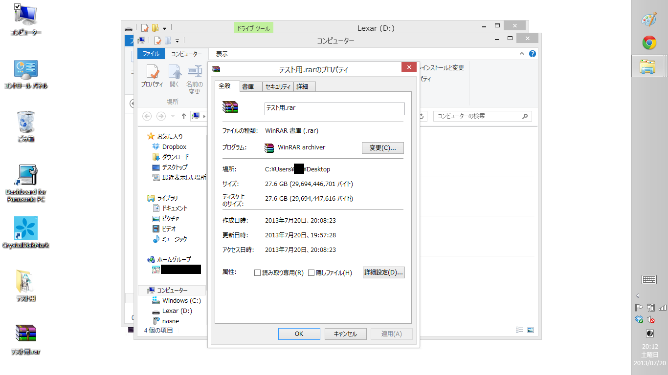 せっかくなのでこのデータを圧縮しRAR化、1つのファイルとして転送してみました。