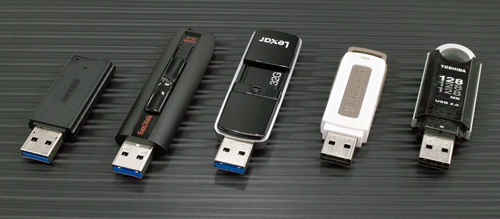 大きさ的には、今回比較用に用意したものと比較して、明らかに大きい訳ではありませんが、今時のUSBメモリとしては大きな方の部類に入るのではないかと思います。重さも今回比較した中で最も重い26gで、他は10g前後となっていました。