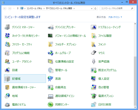 『コントロールパネル』⇒『記憶域』をクリックします。(下の画像が例)