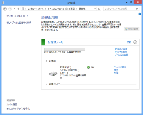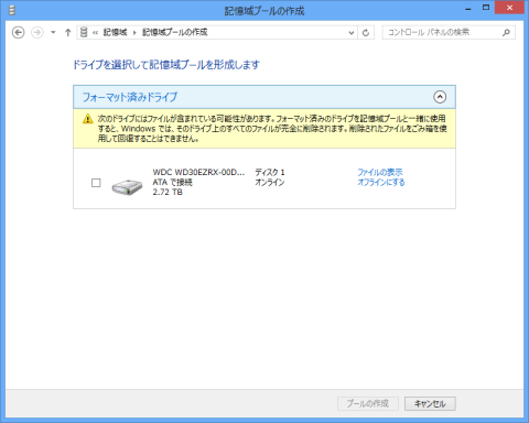 この、記憶プールはRAIDとは違いも「HDDに記憶していたデータが消えない」が売り文句ですが・・・・