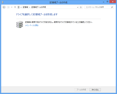 画面上の 『新しいプールと記憶域の作成』 をクリックします。