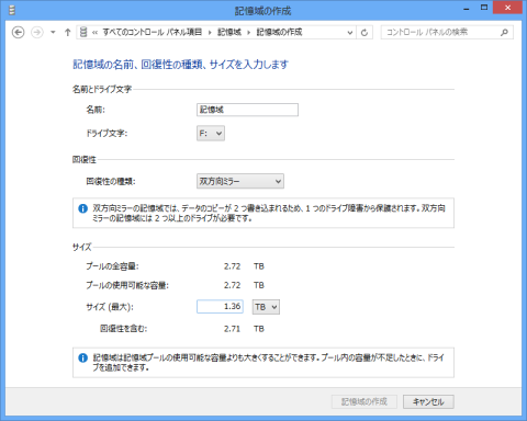 そして、『記憶域の作成』をおして