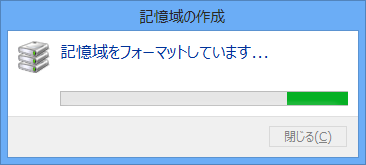 この場所で、記憶域をフォーマットしています。つまりデータが消えてしまいます。