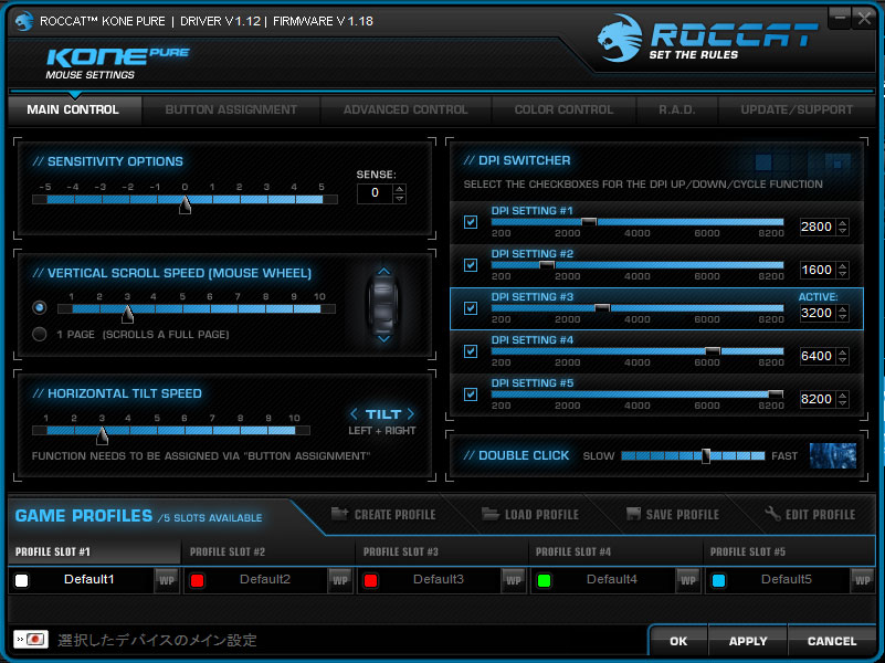 dpiはもちろん、ボリュームの上げ下げや、マウスプロファイルの変更などなど