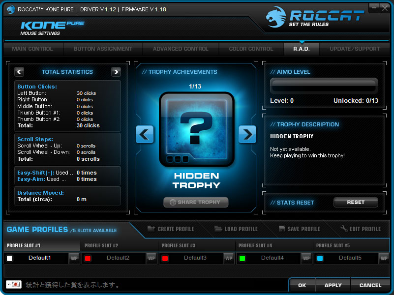 ファーストインプレッションと言うか、いきなり「しゃべり出す」マウスとしてビックリですよねー。しかも「おっさん声」でスピーカーから「プロファイル、トゥー!」とか聞こえてきた日にゃビックリですよ。