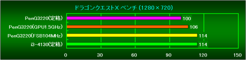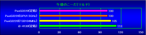 PenG3220(GPU1.5GHz)の状態から、FSBを104MHzまで上げた状態のスコアです。