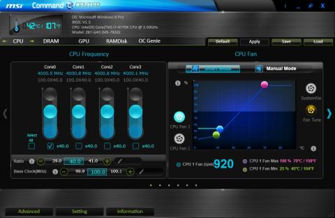 ロジックは分かりませんがi7 4770Kでの初期値は無難な設定(CPU:4.0GHz/GPU:1500MHz)でした。