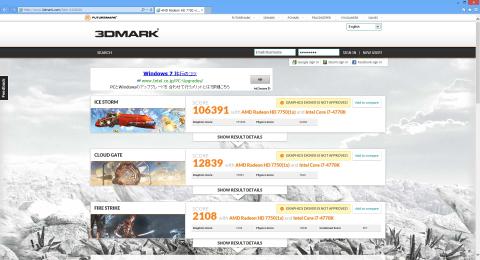 実際にスコア差が出やすいようにRadeon HD7750(Catalyst 13.10 beta)を差して確認してみましたが8.0と8.1Previewでは同等のパフォーマンスでした。