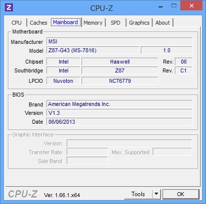 MSIのZ87はマザーボード上のパーツの色が黄・赤・青と分かれており本製品は青。