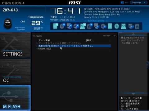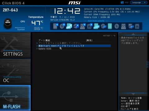 USBメモリにファイルを置き、BIOS(UEFI)からのアップデートを行った。