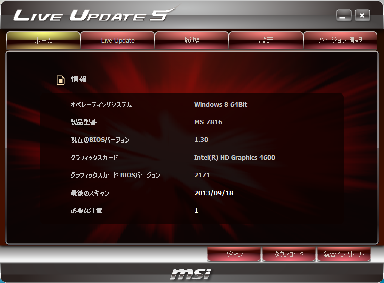 Windows8 に最適化した MSI UEFI BIOSで、マザーボードの機能を可視化した表示やハードウェアモニタを備えています。