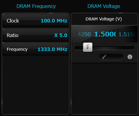 DRAMの周波数表示と電圧の表示および設定です。