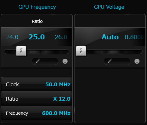 GPU周波数および電圧設定です。