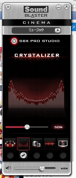 このシリーズには SoundBlaster X-Fi MB3 などがありますが、CINEMAは機能がEAXに関係ない部分に限定されている感じになってます。