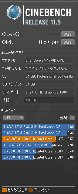 使用するベンチマークは 前回同様 CINEBENCH 11.5( 11.529 ) で、完走できればOKとします。